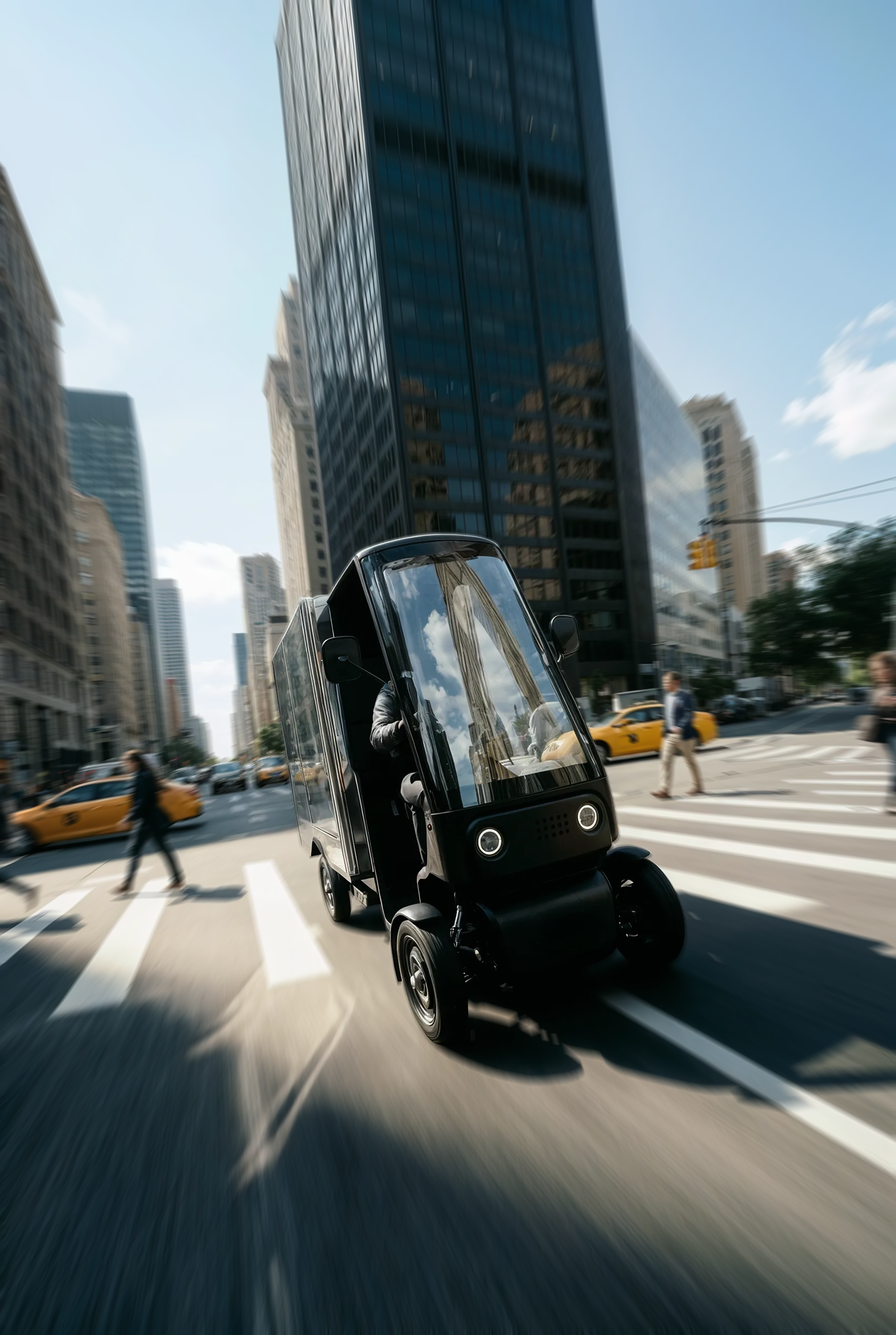 Smart key system for fast access, secure storage for tools and cargo, dual batteries for uptime with no mid-shift swapping, and acoustic safety for crowded streets.